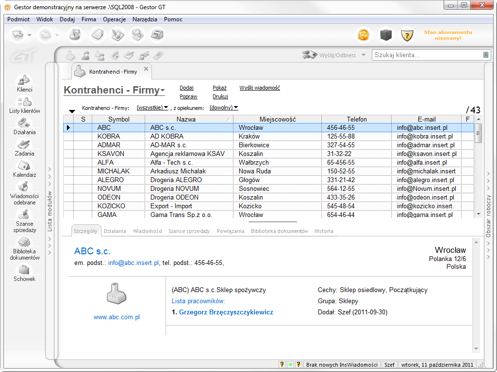 Gestor GT - System zarządzania relacjami z klientami, współpracujący z Subiektem GT