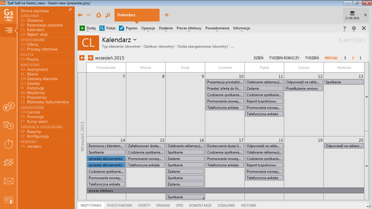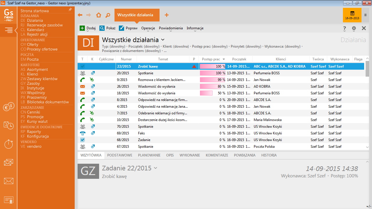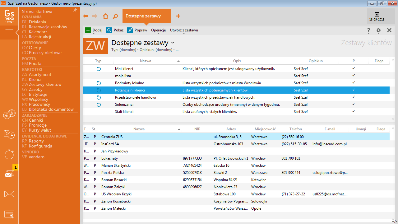Gestor nexo pozwala na m.in: ewidencjonowanie detalicznych danych klientów wraz z ich historią kontaktów, przedstawianie i