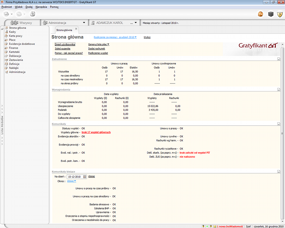 Gratyfikant gT - Nowoczesny, bogaty funkcjonalnie system kadrowo-płacowy